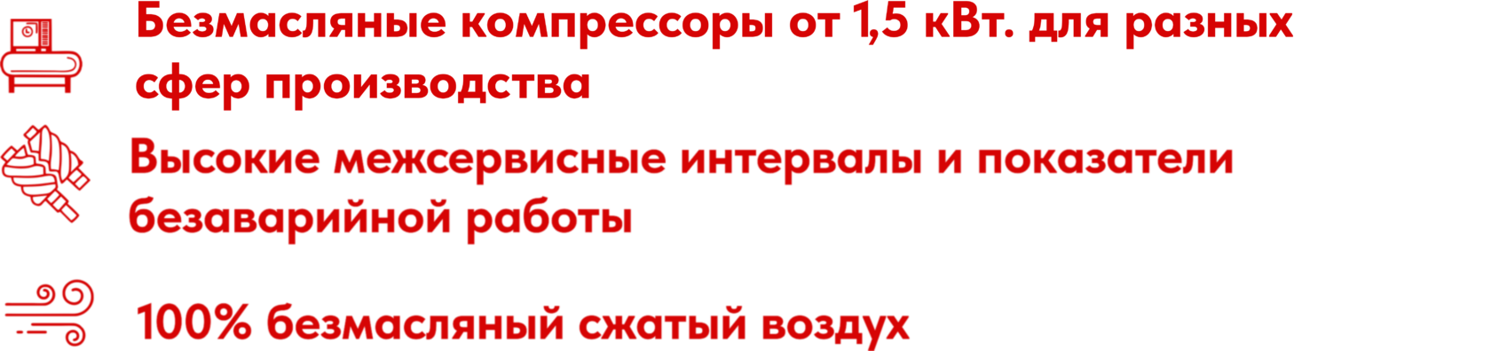 Отсутствие масла обеспечивает экологичность воздуха, что в свою очередь напрямую влияет на качество Вашего производственного процесса и реализации продукта